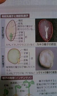 今 柿の種子 有胚乳種子 と大豆の種子 無胚乳種子 の図が並んでいま Yahoo 知恵袋